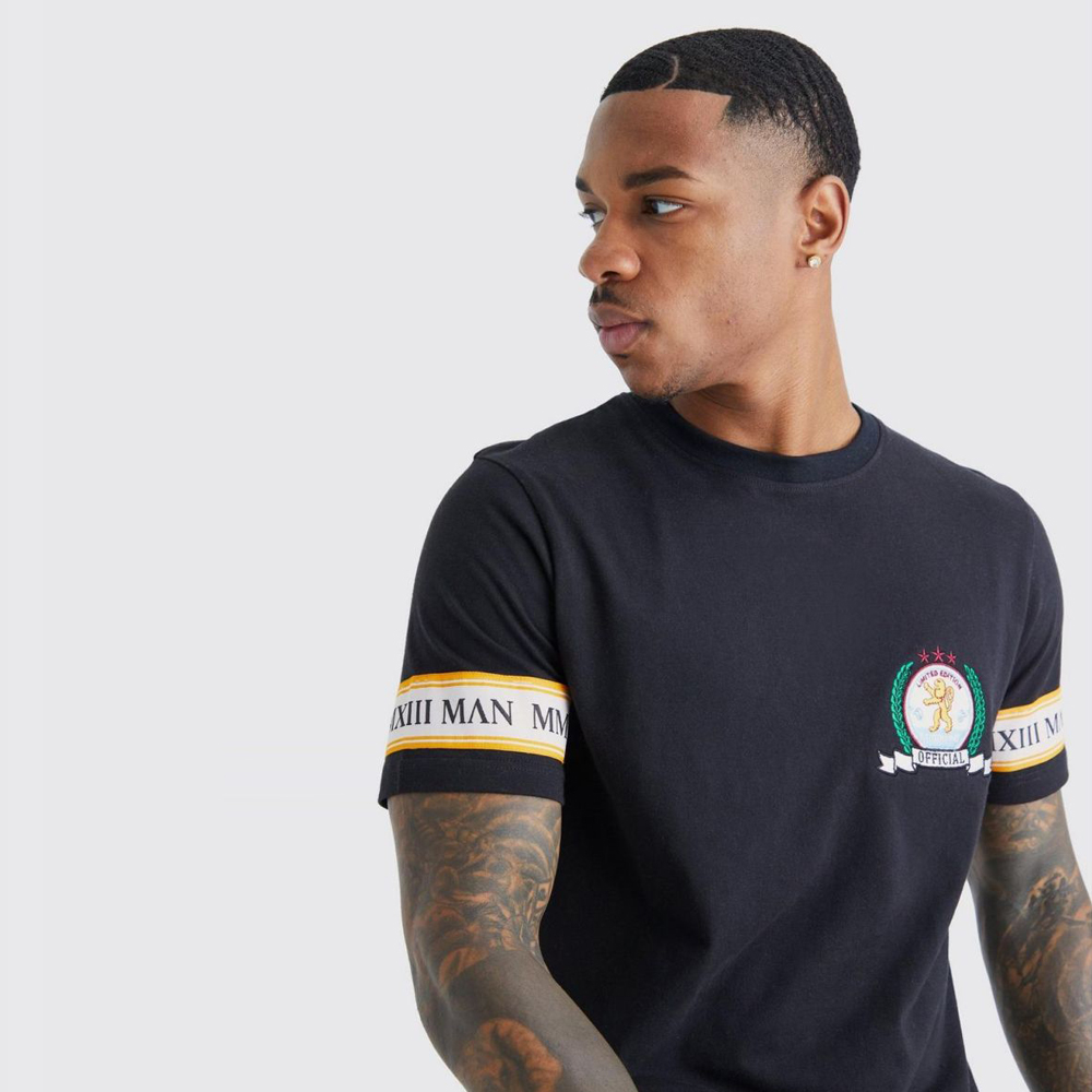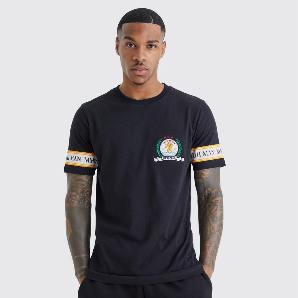 Man Gold Slim Emberoidred T-Shirt – Black